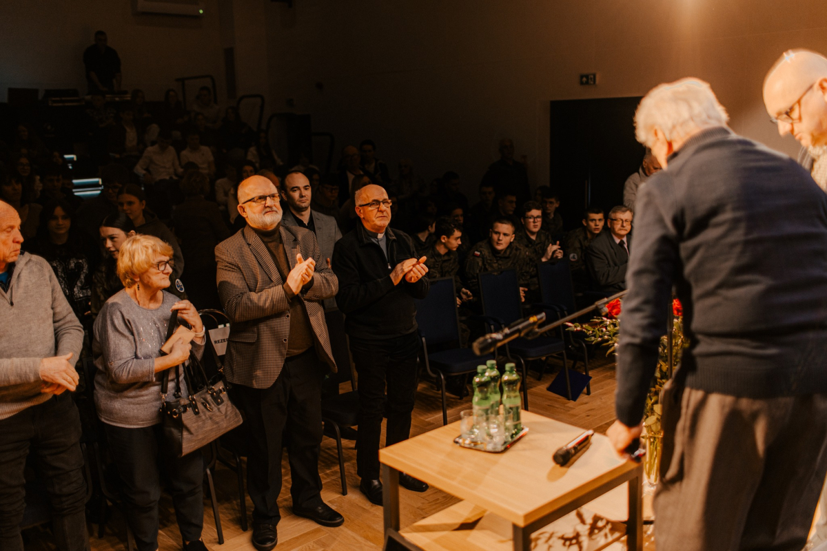 Szczególnym i niezwykle poruszającym momentem było spotkanie z Januszem Rudnickim – więźniem niemieckiego obozu koncentracyjnego Auschwitz. Rozmowę poprowadził Arkadiusz Chyla. Osobiste świadectwo tamtych wydarzeń wywarło ogromne wrażenie na zgromadzonych. Cisza na sali była najlepszym dowodem na to, jak ważne i przejmujące były to słowa. Takie spotkania przypominają, że historia to nie tylko daty i podręczniki, ale przede wszystkim ludzie i ich losy.
