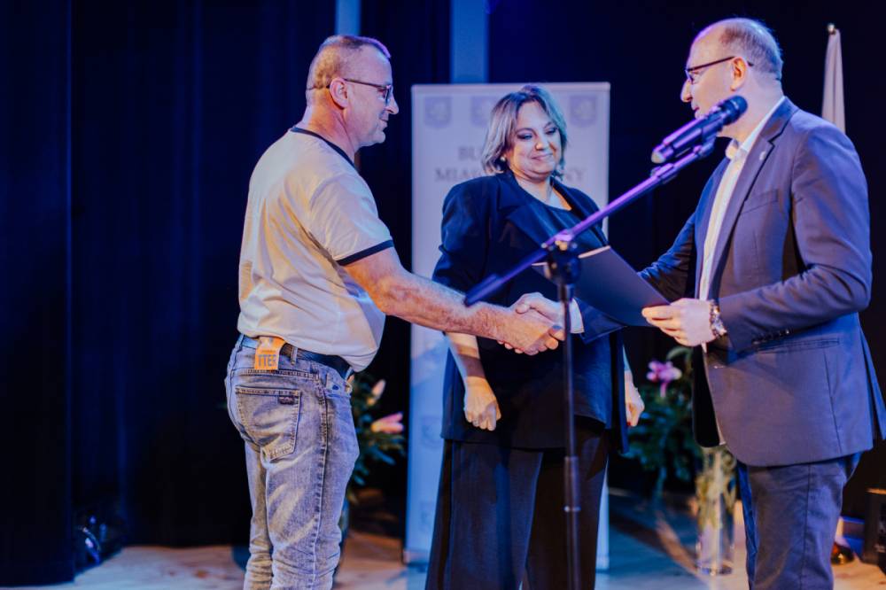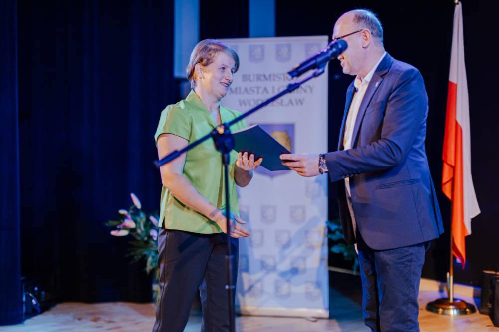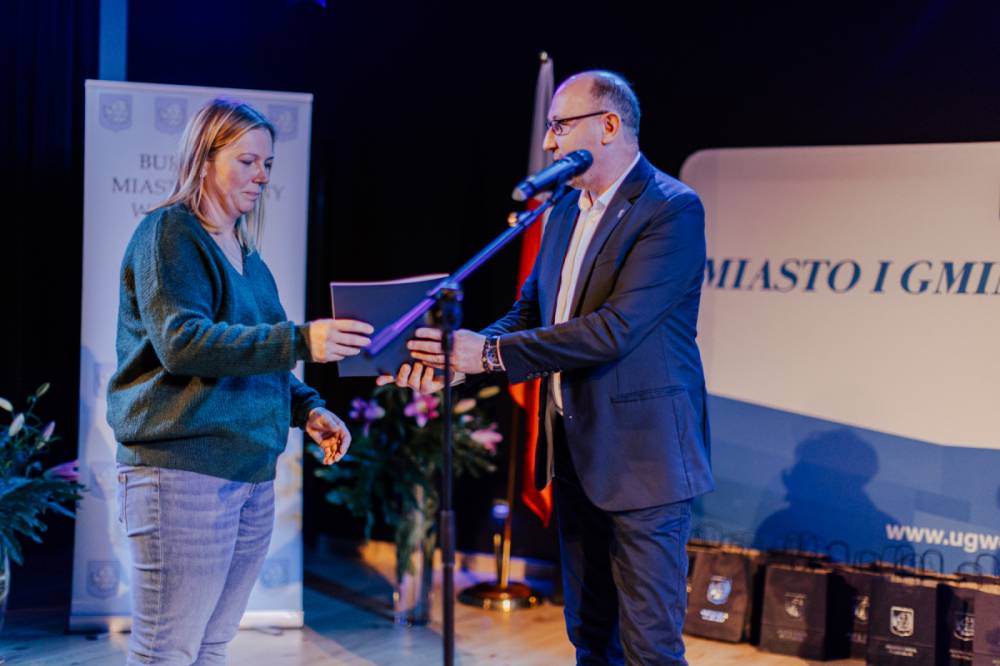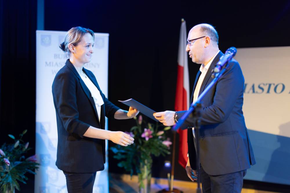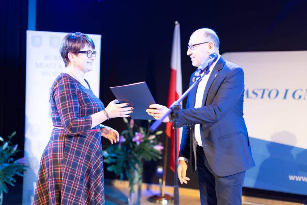 Burmistrz Dominik Łukasik pogratulował nauczycielom awansu, życząc im dalszego rozwoju zawodowego, sukcesów w pracy pedagogicznej oraz satysfakcji z codziennej pracy z dziećmi i młodzieżą.