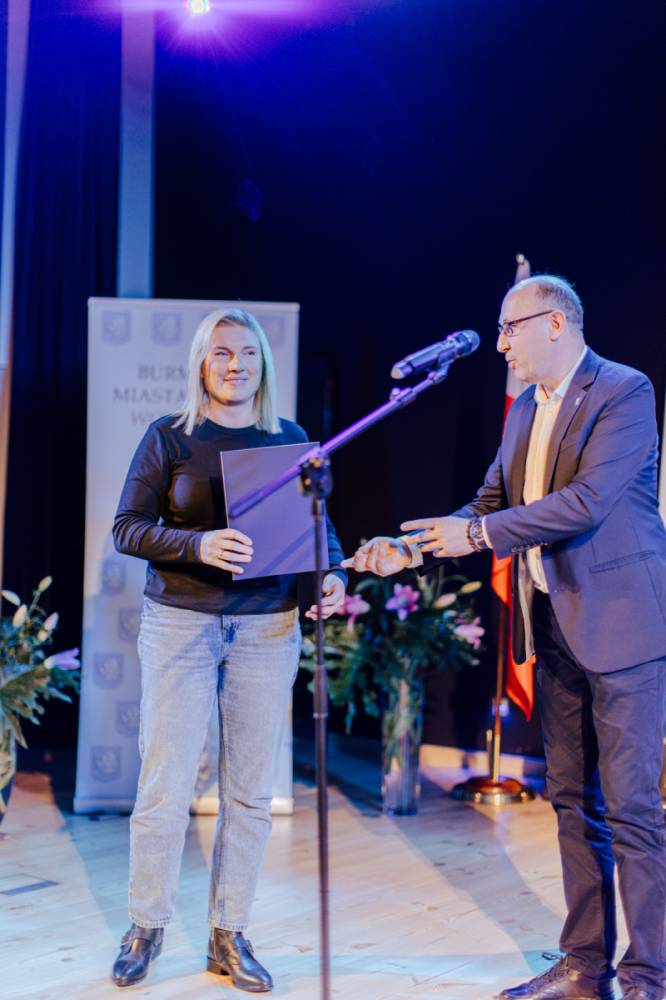 Podczas uroczystości burmistrz Dominik Łukasik pogratulował wszystkim wyróżnionym uczniom, dziękując im za ambicję, systematyczność i zaangażowanie w zdobywanie wiedzy. Stypendyści otrzymali pamiątkowe dyplomy, statuetki i symboliczne upominki.
