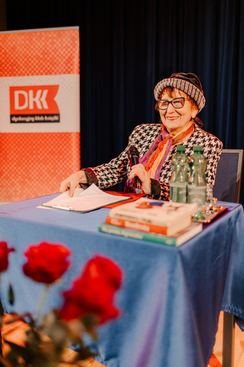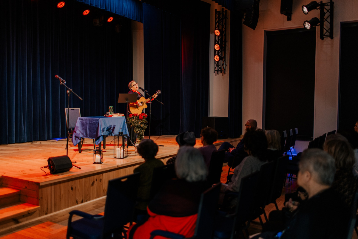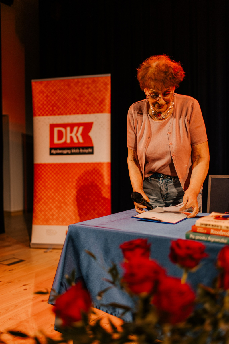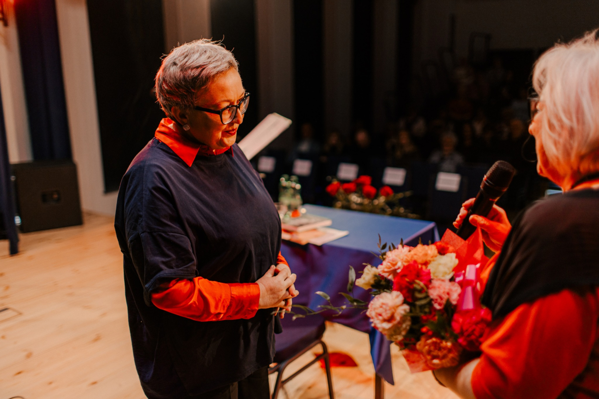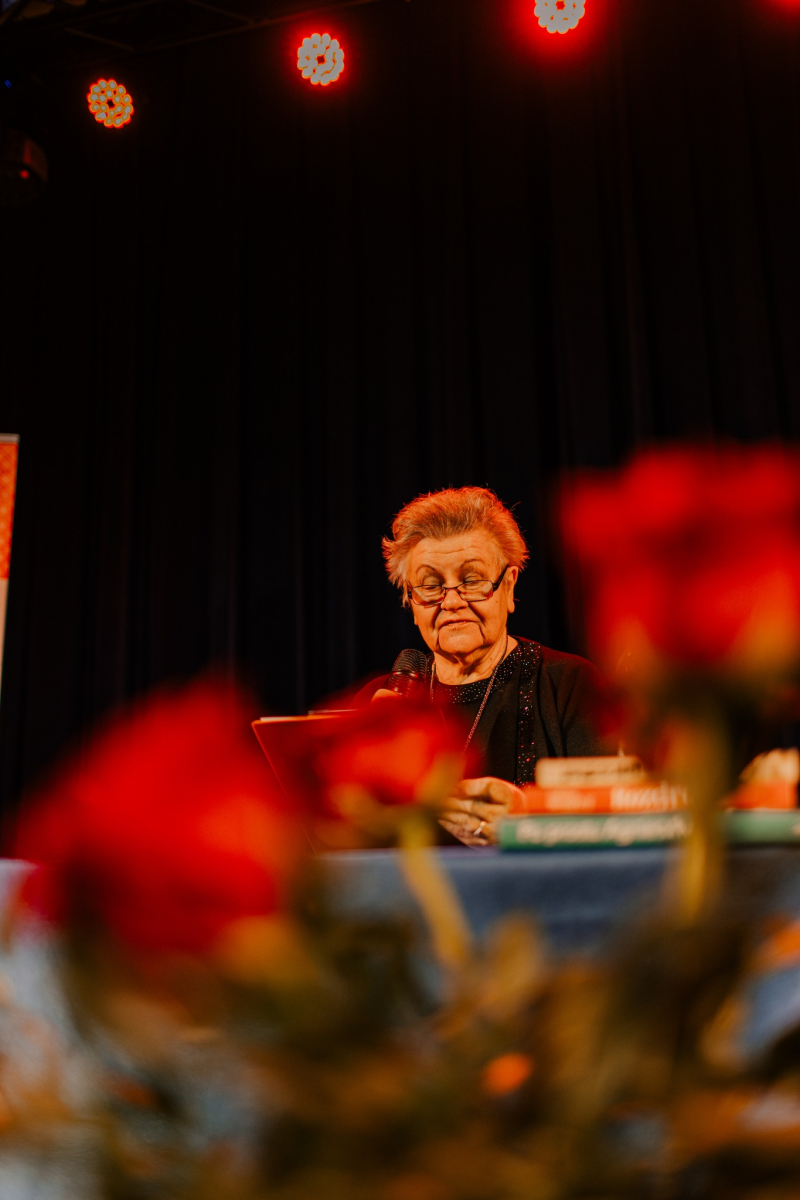 Po tej literackiej części wieczoru przyszedł czas na muzykę. Na naszej scenie wystąpiła Mariola Konieczna – śpiewająca poetka, kompozytorka i wokalistka związana z nurtem piosenki literackiej i poetyckiej. Jej twórczość to niezwykłe połączenie autorskich tekstów z komponowaną do nich muzyką – subtelne, refleksyjne i pełne emocji utwory, które trafiają prosto do serca.