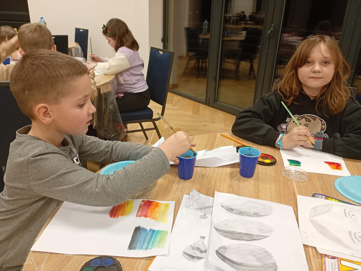 Za nami drugie twórcze spotkanie prowadzone przez Anitę Łukasik – regionalną malarkę, rysowniczkę i animatorkę kultury, która z ogromnym zaangażowaniem wprowadza dzieci w świat sztuki.